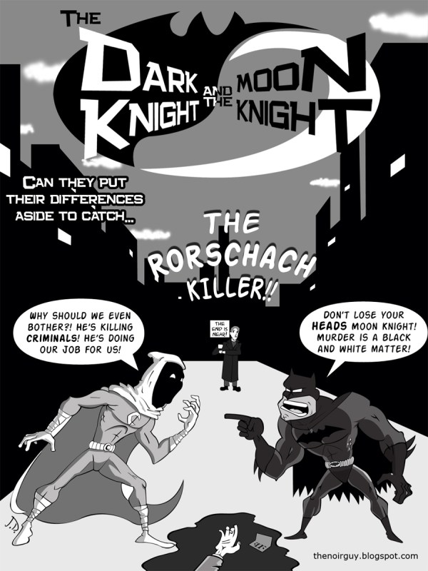 A made-up cover of a Dark Knight/Moon Knight comic created in Illustrator.